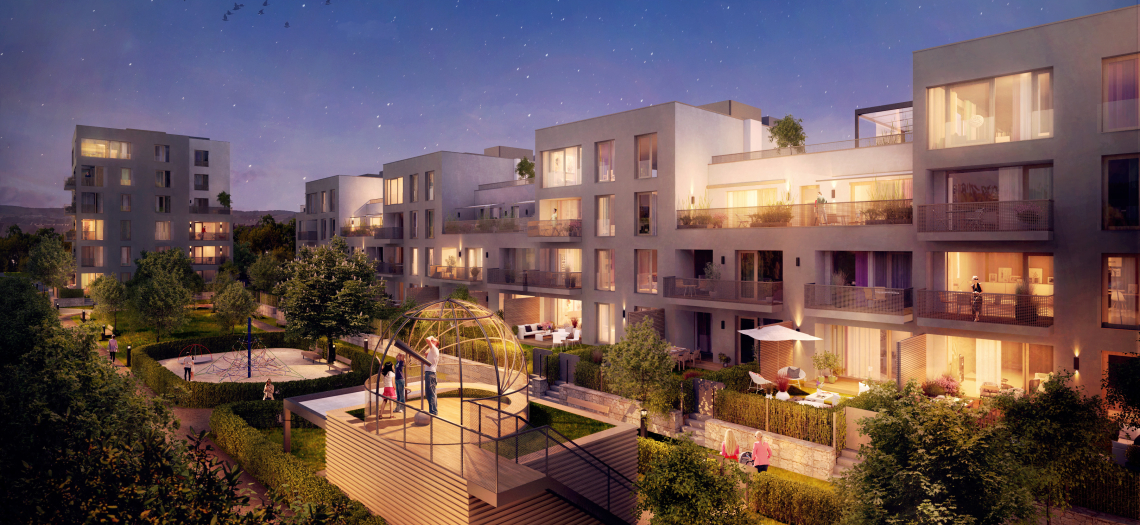 Architektonický koncept energeticky pasivního projektu Na hvězdárně Třebešín, který navrhlo studio Podlipný Sladký architekti, podporuje komunitní rezidenční charakter bydlení a navozuje soulad s okolní přírodou. Obytný soubor tvoří tři bytové domy s 65 komfortními byty, ze kterých se otevírají výhledy do privátního parku i okolní zeleně. Jednotlivé domy působí jednoduchým a kompaktním dojmem, jejich polozapuštěné balkony a ustupující střešní terasy jsou však navržené tak, aby poskytovaly dostatek soukromí. Právě terasy člení dominantní dlouhou hmotu do čtyř menších věží a umožňují realizaci přídavných konstrukcí – pergoly nebo letní kuchyně.