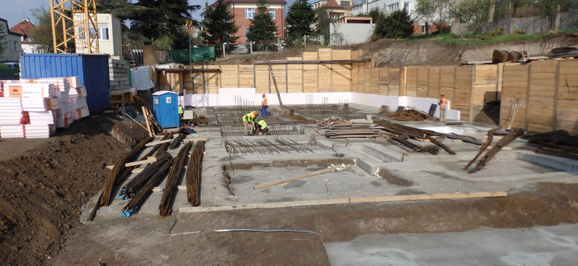 Luxusní projekt Rezidence Červený dvůr bude mít již brzy zhotovenou základovou desku