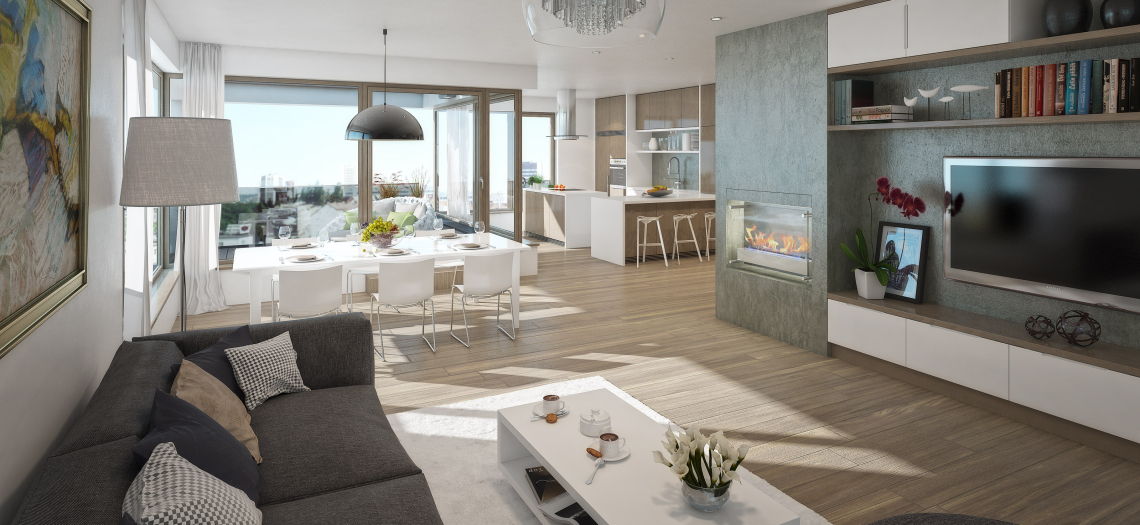 Základní materiálové standardy projektu Na hvězdárně Třebešín vybrala designérka Pavla Hromková ze studia Notakio, která se inspirovala hvězdnou oblohou a vesmírem. Interiérové řešení proto charakterizuje přírodní minimalismus odkazující na povrch vesmírných těles. Jeho základem jsou pískové a teple šedé odstíny, mat nebo minimalistický přírodní dekor (i dřevodekor) a struktura (např. jemné prohlubně a póry).