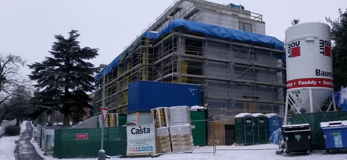 Stavební práce na energeticky pasivním projektu Rezidence Červený dvůr pokračují podle plánu: aktuálně zde dokončujeme zateplení fasády a provádíme hrubé podlahy. Výstavbu luxusního viladomu plánujeme dokončit již na podzim letošního roku.