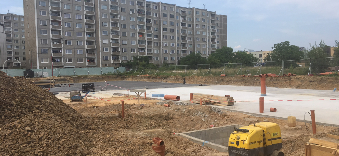 Výstavba energeticky pasivního projektu Zelená Libuš s 66 byty a 600 m2 komerčních ploch pokračuje podle plánu. Po dokončení pilot pod bytovým domem jsme se zaměřili na realizaci podkladních betonů a ležaté kanalizace.