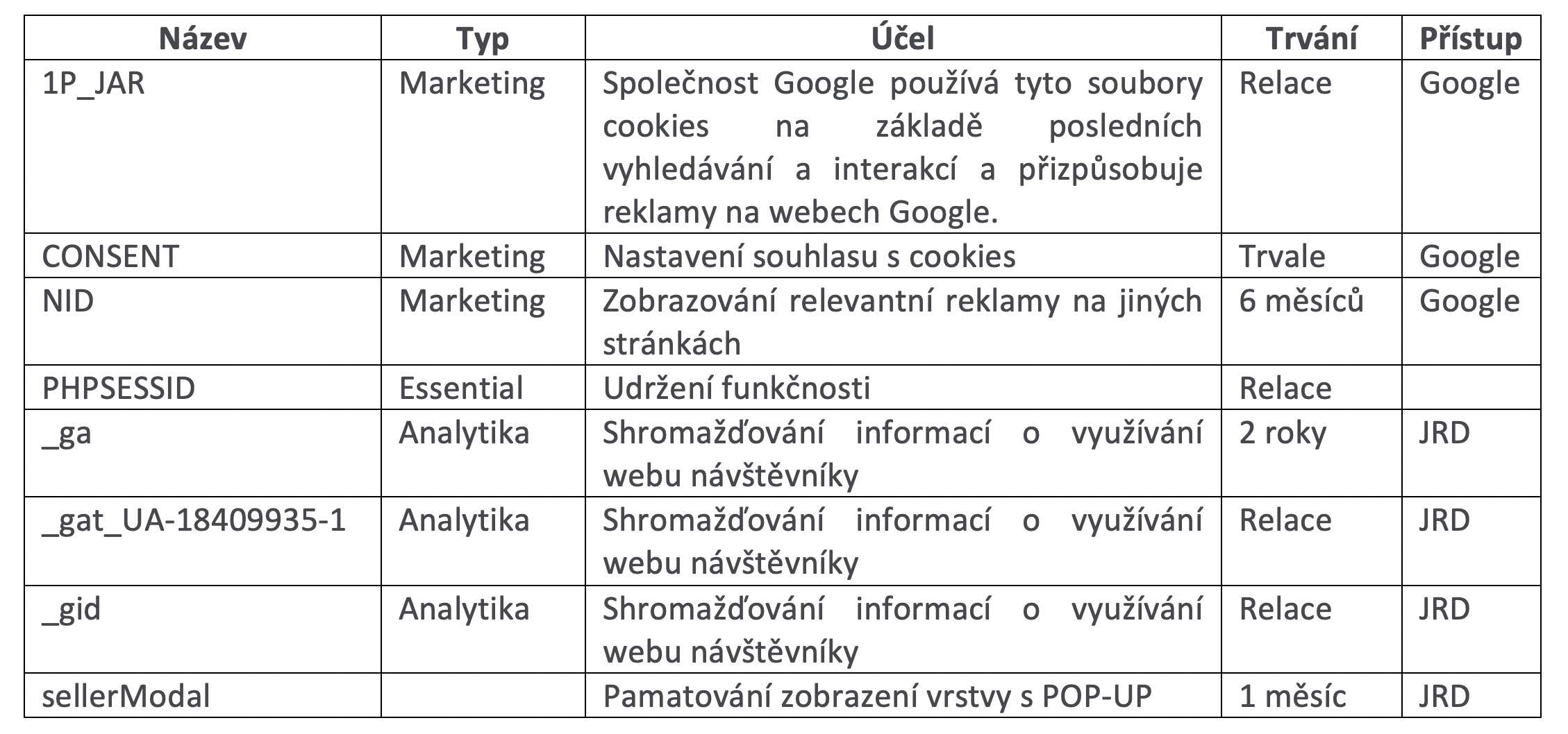 Údaje získané za pomocí souborů cookies jsou osobními údaji ve smyslu platných zákonů. Souhlas k jejich zpracování dáváte automaticky tím, že v nastavení Vašeho prohlížeče má prohlížeč umožněno ukládat cookies do koncového zařízení. Pokud si nepřejete, aby byly Vaše údaje tímto způsobem zpracovávány, je třeba toto zakázat v nastavení Vašeho prohlížeče. Pokud cookies deaktivujete, ztratíte možnost využívat na plno naše stránky.
